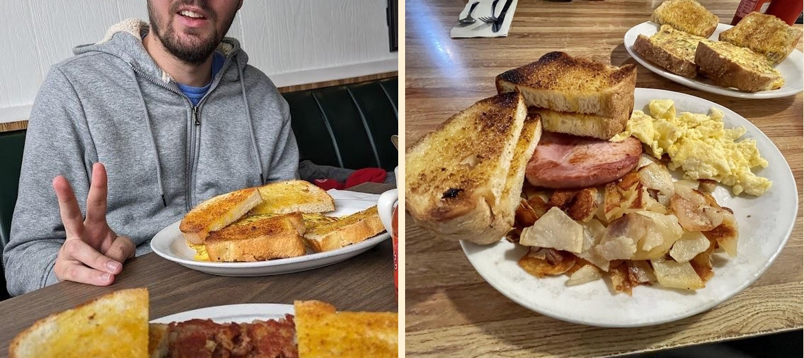 Try the Two Eggs and Homemade Toast. It's a classic. The blue pancakes and sausage gravy with biscuits are also favorites. These dishes offer a taste of local flavor.